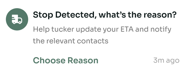 Auto notification if the truck stops longer than 5 minutes.